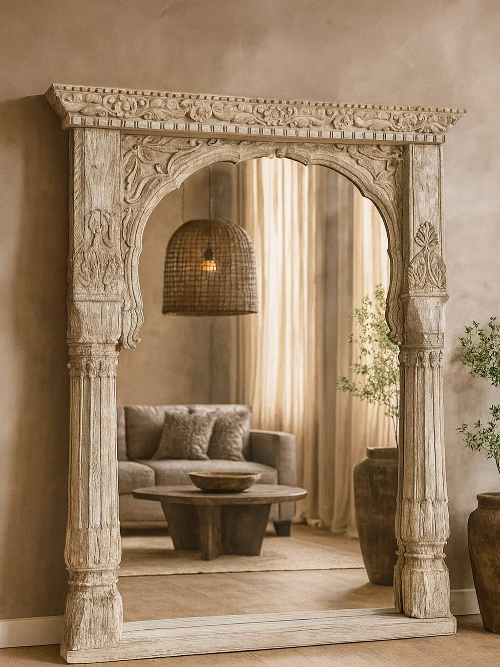 Antique-style carved wooden mirrors – rich in detail and artistry, perfect for adding depth and warmth to your décor.