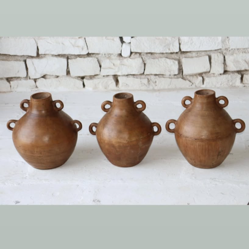 Crafted from ceramic with a rich, earthy glaze, these beautifully rounded pots bring warmth and sculptural presence to any space. Inspired by traditional amphora forms, each piece is finished with small loop handles that add both character and a subtle decorative detail.